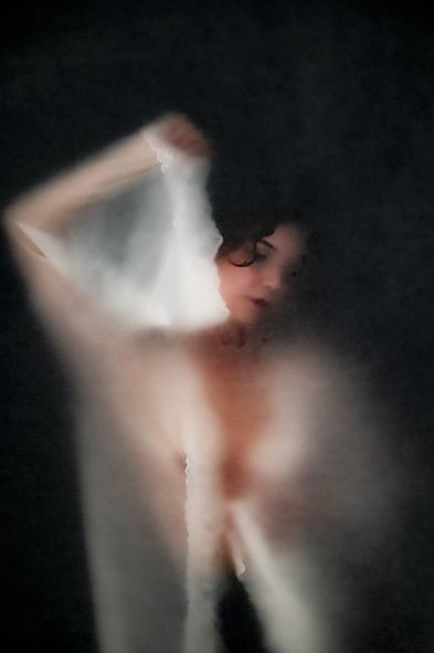 Het beeld toont geen identiteit, maar een intieme aanwezigheid — fluïde, gelaagd en bewust ongrijpbaar.